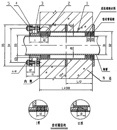 2、柔性防水套管一般穿過墻壁之處受有振動或有嚴(yán)密防水要求的構(gòu)筑物。